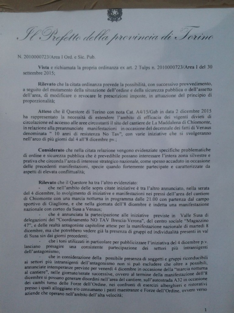 Read more ›Da Tg valle susa- 8 dicembre il Prefetto decreta l’interdizione al cantiere di Chiomonte Dopo lo schieramento delle Forze dell’Ordine di fronte all’ospedale di Susa e l’ordinanza che voleva impedire […]