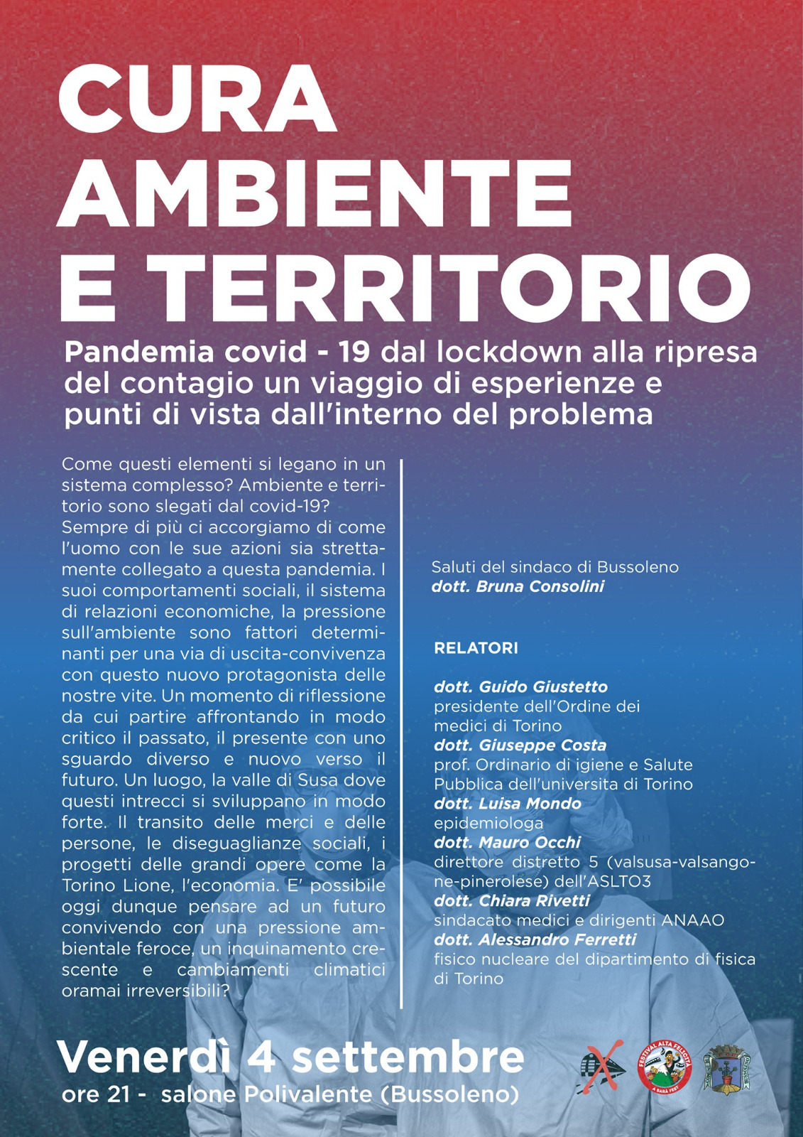 Venerdì 4 settembre alle ore 21, al Polivalente di Bussoleno, si terrà il dibattito “CURA, AMBIENTE E TERRITORIO. Pandemia Covid-19, dal lockdown alla ripresa del contagio, un viaggio di esperienze […]
