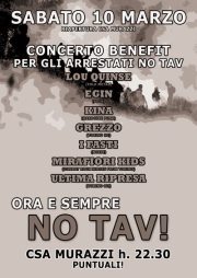 Il 10 marzo il Csa Murazzi riapre con un concerto benefit per gli arrestati no tav!