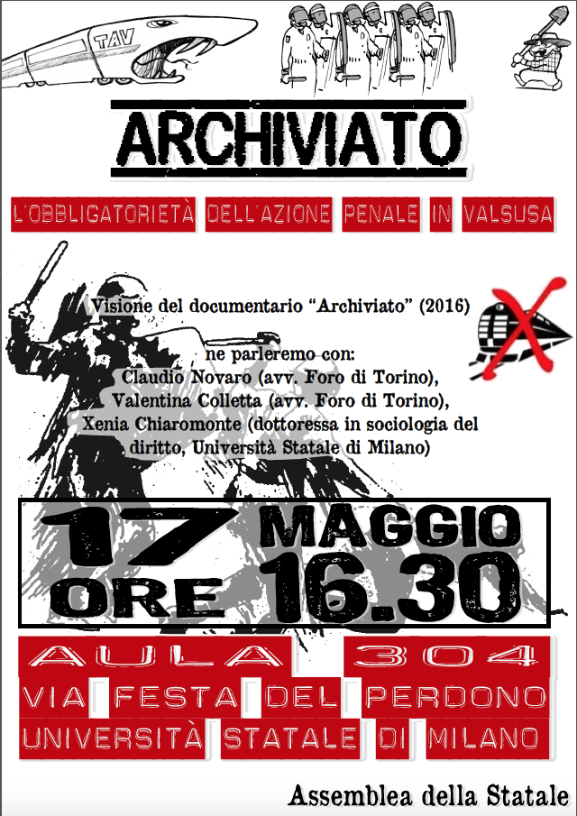 Da quasi un anno prosegue la proiezione di ARCHIVIATO in tutta Italia. Il documentario è stato visto ormai da migliaia di cittadini italiani, è stato proiettato in circoli, centri sociali, università e persino in sedi istituzionali come il Senato, la Regione Piemonte ed il Comune di Torino e ne è stata richiesta la visione anche all’estero. Ad oggi il bilancio è estremamente positivo perchè i cittadini hanno dimostrato interesse e la giusta indignazione per l’operato della magistratura torinese, riconoscendovi abusi e strumentalizzazioni peraltro diffusi su tutto il territorio nazionale. Si deve però registrare il perdurare della voluta e complice indifferenza istituzionale e dei media generalisti nei confronti di quella che è una lucida e documentata denuncia non solo dell’operato delle forze dell’ordine, ma soprattutto della magistratura che, sicura della sua insindacabilità ed intangibilità, persevera nel reprimere ogni forma di conflitto e dissenso sociale senza neppure saper assicurare giustizia a chi la invoca.