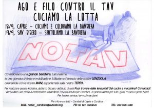 Invece domenica 19 settembre al Presidio No Tav di San Didero, dalle ore 17,00 portiamo un po’ di colore ed energia positiva e esponiamo la bandiera!