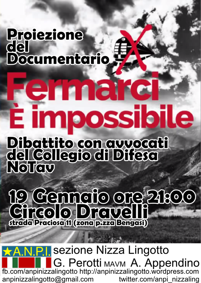 Proiezione del documentario “Fermarci è impossibile” e dibattito con avvocati del Collegio di Difesa NOTAV.