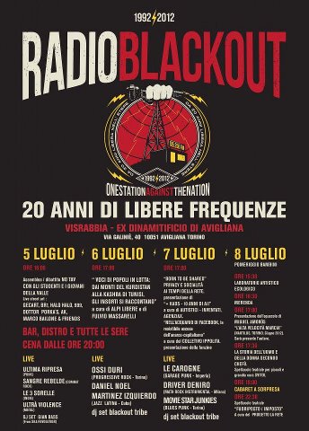 5-8 LUGLIO 2012 BLACKOUT FEST #1 – 20 ANNI DI RADIO BLACKOUT 105.250 FM. 20 ANNI DI LIBERE FREQUENZE! @ VisRabbia via galiniè 40, Avigliana (TO) ex dinamitificio