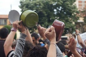 La CACEROLADA è una forma di protesta rumorosa che consiste nel battere su pentole e casseruole….quindi venite preparati!