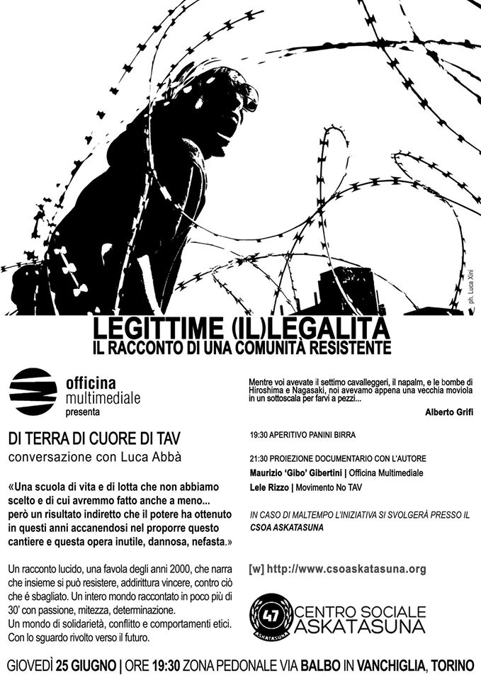 Proiezione: DI TERRA DI CUORE DI TAV | Conversazione con Luca Abbà