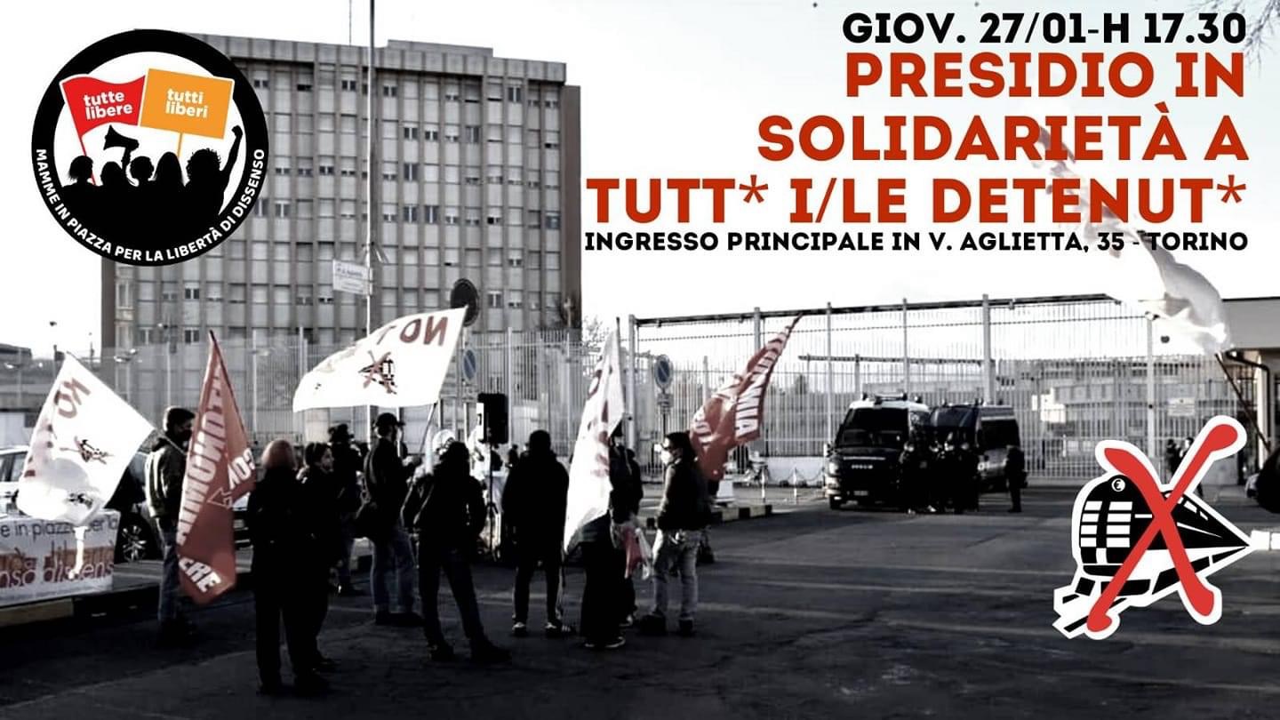 Giovedì 27/01 torneremo, dalle 17.30 alle 19.30, sotto il carcere delle Vallette, insieme alle Mamme in piazza per la libertà di dissenso , per il Presidio in solidarietà a tutt* i/le detenut* e a tutt* le vittime della repressione.