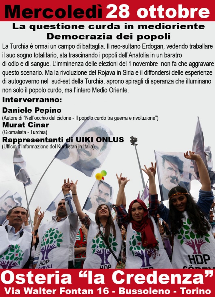 28 ottobre ore 21 Bussoleno La Credenza “La questione kurda in medio oriente”