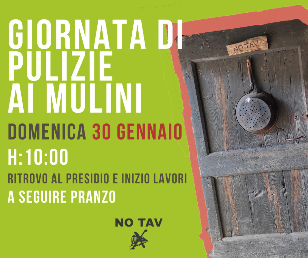 Pertanto, ci vediamo domenica 30 gennaio, dalle ore 10, al Presidio Permanente dei Mulini per passare insieme una giornata all’insegna della cura e della salvaguardia del nostro territorio.
