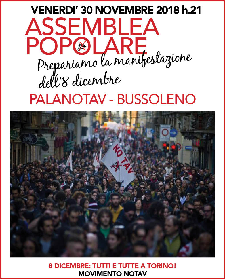 Venerdì 30 novembre a Bussoleno al PalaNotav, ci troveremo in Assemblea per preparare tutti e tutte insieme la manifestazione di Torino dell’8 dicembre