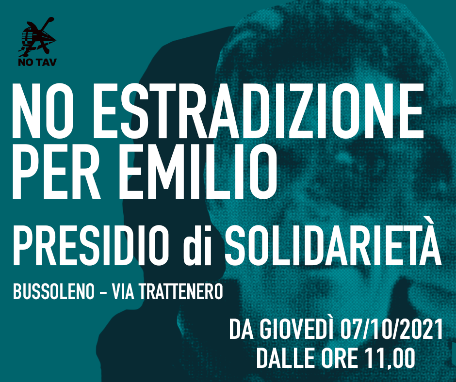 Da giovedì 7 ottobre, dalle ore 11, ci ritroveremo sotto casa di Emilio per costruire insieme un presidio per attendere insieme a lui la risposta del Tribunale della Cassazione che deciderà del suo prossimo futuro.