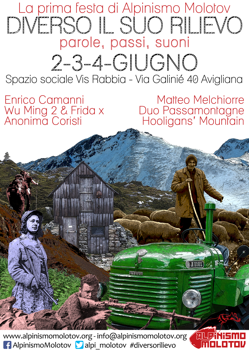 Vogliamo condividere passi, canti, suoni, storie, riflessioni e vogliamo farlo sulle montagne della Valle di Susa, dove il nostro collettivo ha fatto la sua prima uscita tre anni fa. Vogliamo chiamare a raccolta i nostri “compagni di scarpinate” – il rinato sciame apeino, il CAZ – e chi abbiamo incrociato, anche solo virtualmente, in questi anni. Il campo base sarà offerto dalle/dai compagn* dello spazio sociale VisRabbia di Avigliana, dal 2 al 4 di giugno 2017.