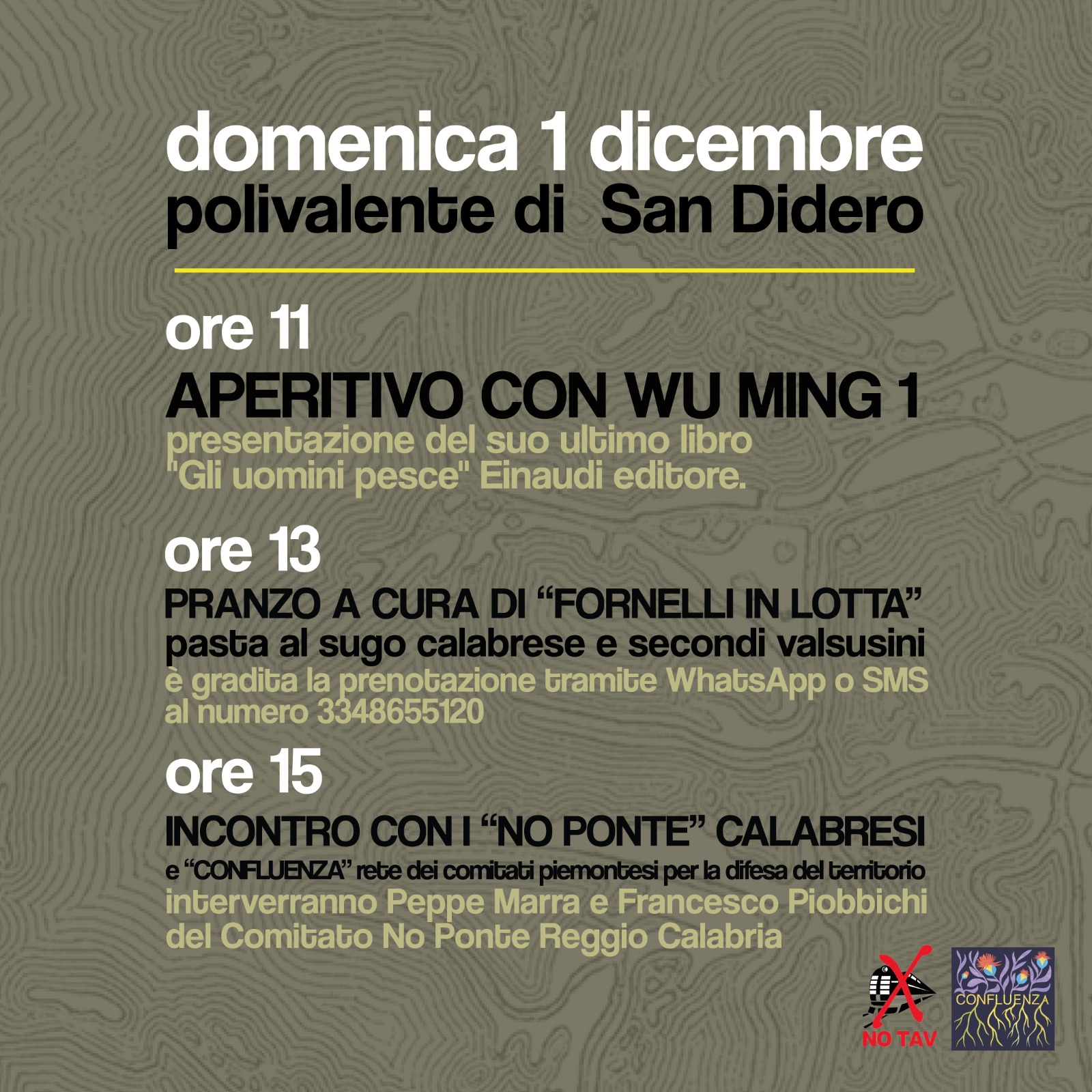 Domenica 01/12 dalle ore 11 – polivalente di San Didero: aperitivo con Wu Ming 1 e incontro con i “No Ponte” e la rete “Confluenza”