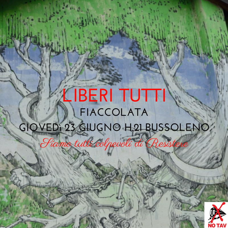 LIBERTA' PER TUTTI%2FE I NOTAVIl movimento notav ha indetto per Giovedì 23 Giugno alle h.21 a Bussoleno una Fiaccolata notav in solidarietà con tutti i notav colpiti dalle misure restrittive in questi giorni.