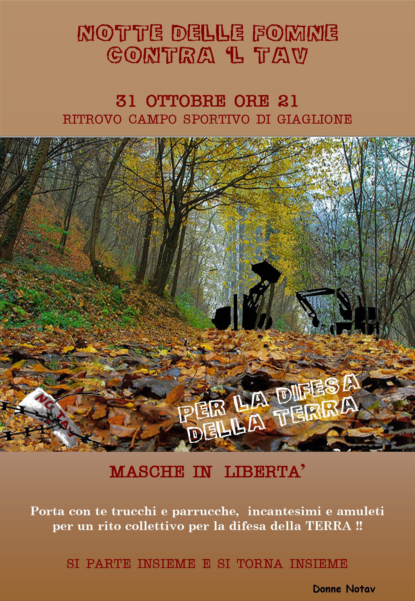 Giovedì 31 ottobre ci troveremo alle 21 al campo sportivo di Giaglione per poi muoverci insieme verso la val Clarea, dove compiremo un rito collettivo in difesa della terra.