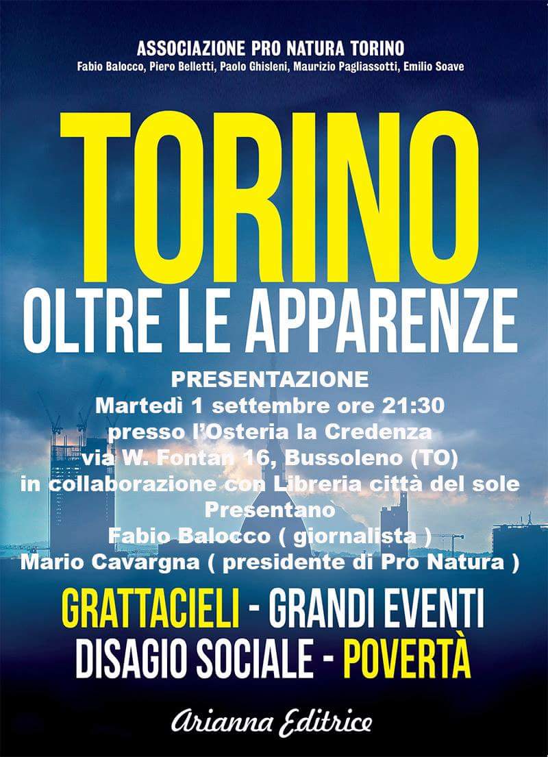 Martedì 1 settembre alle 21:30 in credenza verrà presentato il libro “Torino oltre le apparenze”, presentato da Fabio Balocco e Mario Cavargna.