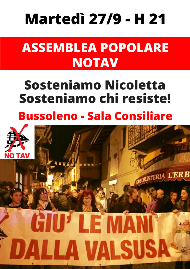 Martedì 27/ 9 alle 21.00: Assemblea popolare a Bussoleno in Sala consiliare