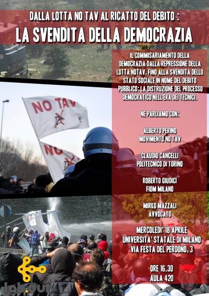 “DALLA LOTTA NO TAV AL RICATTO DEL DEBITO: LA SVENDITA DELLA DEMOCRAZIA”