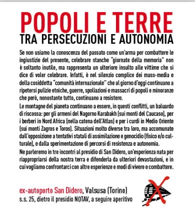 Ne parleremo in tre incontri al presidio ex autoporto di San Didero, un’esperienza nata per riappropriarsi della nostra terra e difenderla da ulteriori devastazioni, e in cui vogliamo anche confrontarci con altre esperienze e modalità di vivere e di combattere.