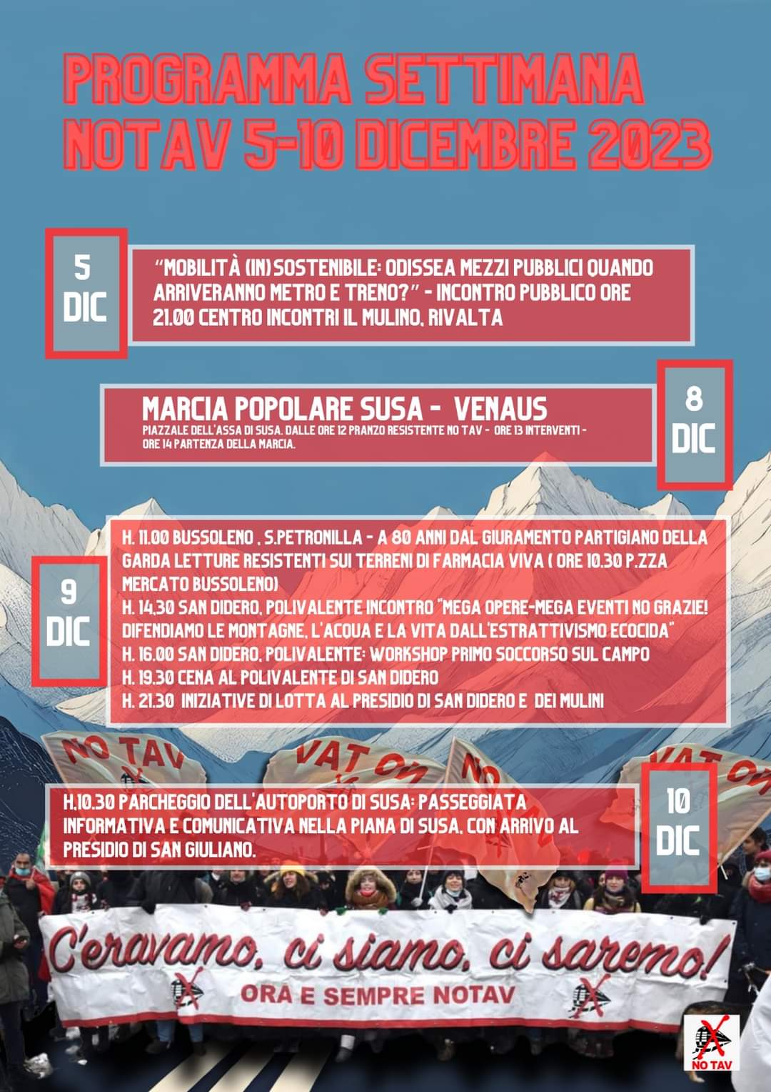 – Ore 14,30 San Didero – polivalente: incontro “mega opere – mega eventi no grazie! Difendiamo le nostre montagne, l’acqua e la vita dall’estrattivismo ecocida.”