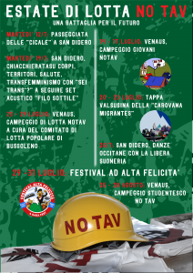 A partire dal 12 di Luglio, con il consueto apericena a San Didero , inizieremo un’estate di lotta che vedrà la partecipazione di tanti comitati che da tutta italia lottano contro le devastazioni ambientali, contro la malagestione della sanità pubblica e contro questa logica di profitto che ormai da troppo tempo invade le nostre vite e i nostri territori.