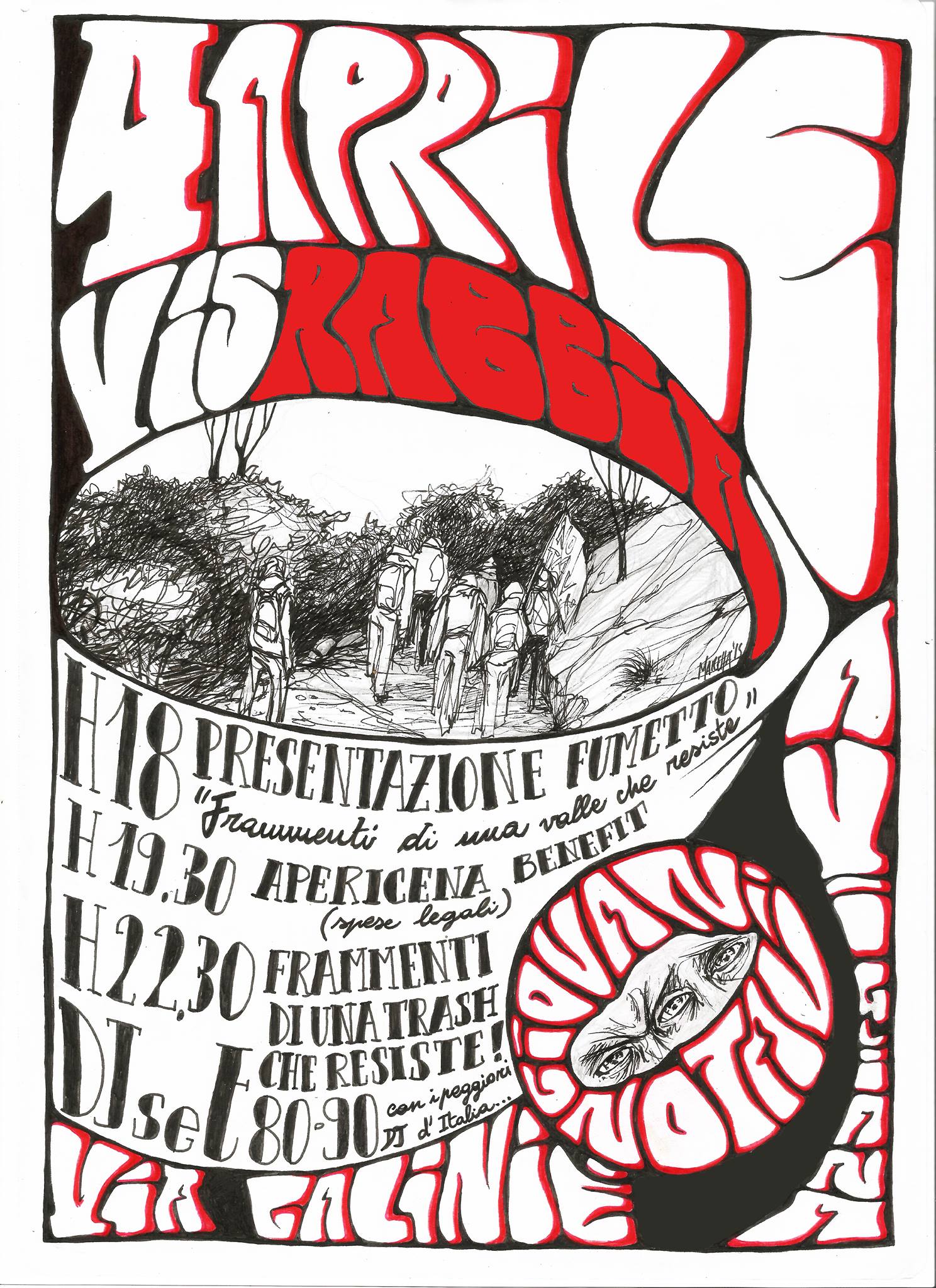 Alle ore 18 presenteremo il nuovo fumetto “FRAMMENTI DI UNA VALLE CHE RESISTE “,che nasce dall’idea di una giovane fumettista della valle, che vuole attraverso il disegno raccontare la ormai ventennale lotta contro l’alta velocità in Valsusa.