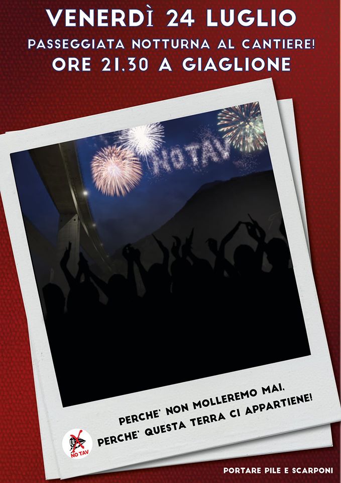 Venerdì 24 luglio, all’interno del 7° giorno di campeggio è stata organizzata la passeggiata notturna verso il cantiere di Chiomonte.