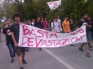 Dopo 6 giorni trascorsi tra iniziative, assemblee e momenti di socialità si è chiuso oggi il campeggio studentesco nazionale No Tav. Vista la grande partecipazione di studenti e l’elevato livello politico e di conflittualità espresso il bilancio finale di questa seconda edizione non può che essere positivo. Nell’assemblea di chiusura le varie realtà confermato quanto costruttiva sia stata questa esperienza che ha messo in comunicazione due lotte, quella studentesca e quella No Tav, solo in apparenza differenti. Le iniziative svolte hanno avuto successo: nella giornata di venerdì gli studenti sono riusciti a sanzionare ITINERA, ditta che porta avanti la cementificazione all’interno del cantiere dello scavo esplorativo, sabato si sono invece recati in Clarea suscitando scompiglio tra le forze dell’ordine che hanno dovuto uscire dal loro fortino per respingere i ragazzi, mentre lunedì nella piazza del mercato di Bussoleno si è svolto un volantinaggio per informare gli abitanti sulle ragioni della nostra adesione alla lotta No Tav. La radicalità e la conflittualità messe in atto hanno dato la giusta impronta ad una lunga estate come quella che si appresta ad incominciare, sottolineando la netta opposizione degli studenti provenienti da tutta Italia ad un’opera tanto dannosa.