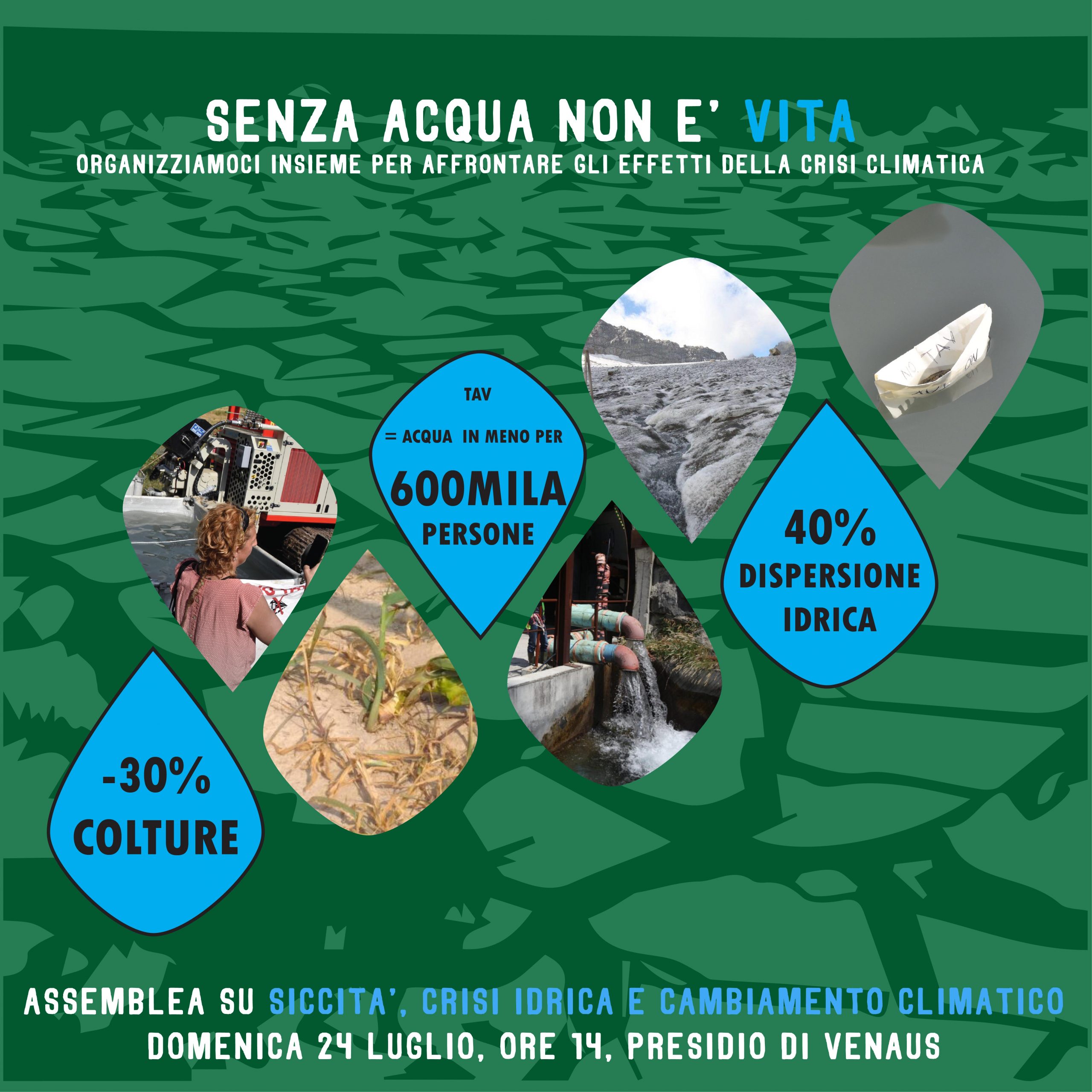 Il 24 luglio alle ore 14 a Venaus si terrà un’assemblea sul tema della siccità e della crisi idrica allo scopo di organizzarci per costruire dal basso una risposta agli effetti concreti del cambiamento climatico. Di seguito l’appello di lancio dell’assemblea: