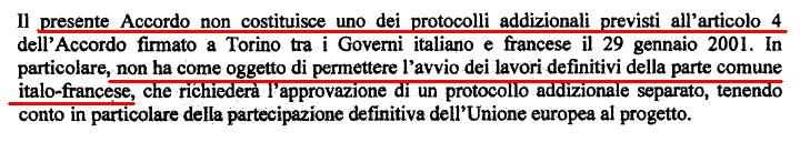Ecco il famoso testo del famoso accordo Italia Francia siglato a Roma il 30 gennaio 2012. Da subito era chiaro e l’avevamo scritto che non era altro che fumo negli occhi dell’opinione pubblica e degli investitori. Firmato a 4 giorni dall’operazione della magistratura torinese contro il movimento no tav, inserito in una fase di stanca della situazione tav Torino Lione, dopo le difficoltà estive piantati nell’inverno delle alpi. Nei giorni a seguire poi la situazione si era fatta sempre più misteriosa, il famoso e sbandierato accordo non si trovava, le facce dei ministri, le foto e le dichiarazioni sì, ma il testo, la carta, quello che conta non si trovava più. Finalmente dopo giorni eccone una copia e la realtà in questo caso supera davvero la fantasia, leggere per credere. Non solo l’accordo non dice nulla di nuovo rispetto ai precedenti e numerosi sodalizi ma, nel suo art.1 di apertura pone un chiaro limite all’accordo stesso: