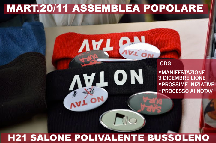 Il Movimento Notav invita tutti e tutte all’assemblea popolare che si terrà martedi’ 20 Novembre dalle h.21 al salone polivalente di Bussoleno per discutere: