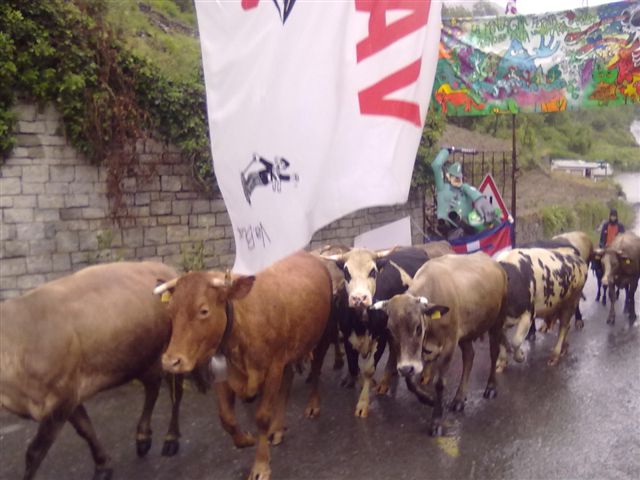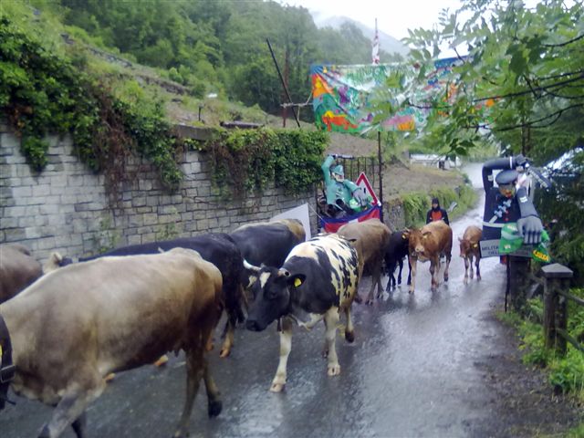 Giornata particolare oggi al presidio della Maddalena. Con una pioggia torrenziale che da ieri non da tregua, questa mattina abbiamo avuto la visita di un gruppo di mucche che hanno attraversato la Ramat. Alla faccia di chi dice che le strade sono chiuse, ecco la dimostrazione di come il movimento intende la difesa del territorio.