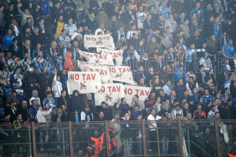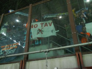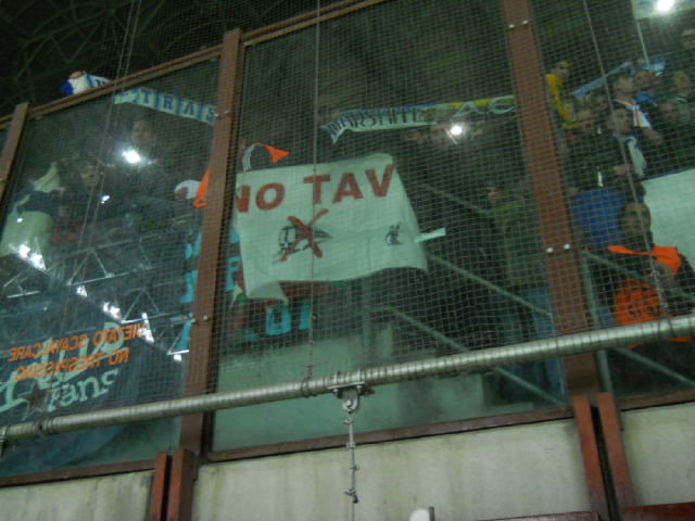 A fine partita, nonostante la sconfitta, il morale del mio amico si è risollevato nel trovare fra i tifosi del Marsiglia… delle bandiere No Tav!