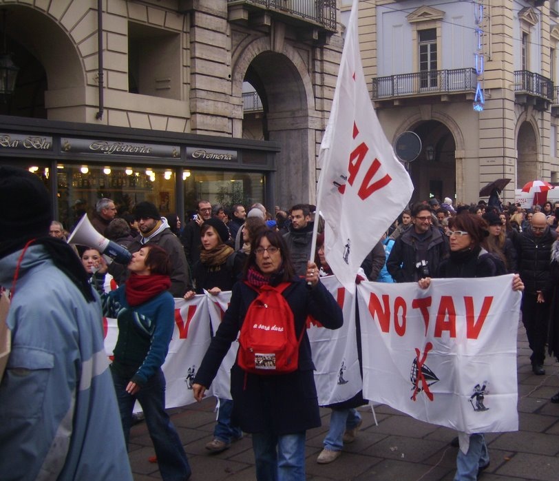 Domenica 13 febbraio molte donne ma anche tanti uomini della Valsusa, hanno partecipato al corteo delle donne a Torino.Molte si sono sparpagliate nella massa umana veramente imponente, altre abbiamo scelto di esibire le bandiere notav per dare visibilità alla nostra lotta e al nostro protagonismo sociale come donne col cervello. L’indicazione delle organizzatrici della piazza(donne di area PD e sue diramazioni nel sindacato e nelle associazioni di donne , elite intellettuale varia) era quella che non dovevano esserci simboli di partito, sindacato, associazioni,movimenti, ecc.Così, appena abbiamo disposto le bandiere a mò di striscione e ne abbiamo issato una su un’asta è cominciato un viavai di persone, anche molti uomini,che ci chiedevano con le buone ma soprattutto con le cattive di togliere le bandiere.Tutte ci siamo prodigate a spiegare il senso della nostra bandiera e il fatto che ormai da dieci anni la portiamo ovunque e anche con una certa fierezza.Non ci sentivamo affatto fuori luogo per il semplice fatto che potevamo testimoniare un modello di donna nè velina nè velata ma col cervello e la pratica della lotta.Siamo state più volte insultate con inviti vari a metterci la bandiera in quel posto(ma il signore in questione ha detto culo) e altre volgarità simili.Naturalmente non abbiamo ceduto, anzi abbiamo capito che dovevamo alzarla più in alto la nostra bella bandiera, proprio perchè dava così fastidio.Ma perchè tutta questa solerzia da parte di donne e uomini dei vari apparati politicanti presenti in piazza? e Fassino e company che hanno sfilato per un pezzo in corteo tra le prime file non rappesentavano un simbolo di partito?