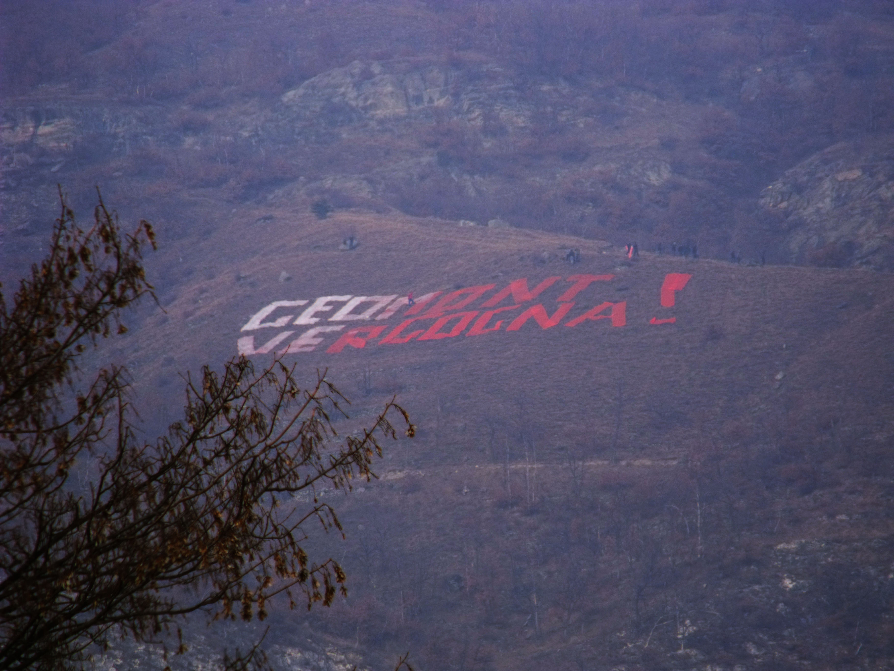 E’ per questo che vogliamo rendere visibile agli occhi di tutti chi collabora con chi ci vuole devastare; chi si vende e ci vende tradendo la Valle merita di essere isolato da Bussoleno e dalla Valle intera; merita così come oggi, che il suo nome sia scritto a caratteri cubitali sulla montagna e nei volantini perché tutti possano sapere.