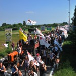 Oggi sabato 21 maggio 10000 no tav hanno marciato da Rivalta a Rivoli, in difesa della collina Morenica, contro il progetto tav Torino Lione e soprattutto rilanciando l’appuntamento a Chiomonte in vista dell’imminente apertura dei cantieri. Ancora una volta, dopo Venaus, dopo la stagione dei sondaggi la val di Susa e la val Sangone sono mobilitate contro l’ennesimo tentativo di aprire i cantieri. Verso la Maddalena, dove il movimento si giocherà una importante stagione di lotta che a giorni ormai dovrebbe aprirsi. Di seguito una cronaca fotografica della giornata, i servizi del tgr Piemonte e una sintesi degli interventi finali.