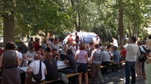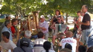 Ed è il gruppo di musicanti No TAV , inarrestabili nonostante il caldo , che scaccia i cattivi pensieri , allietando tutti con musiche , canti e piccoli spettacoli. Il tempo vola e l’ora di lasciare Finale Emilia si avvicina. Tutti rinraziano gli amici valsusini , felici e perfino un po’ piacevolmente sorpresi di questa solidarietà che viene da lontano.