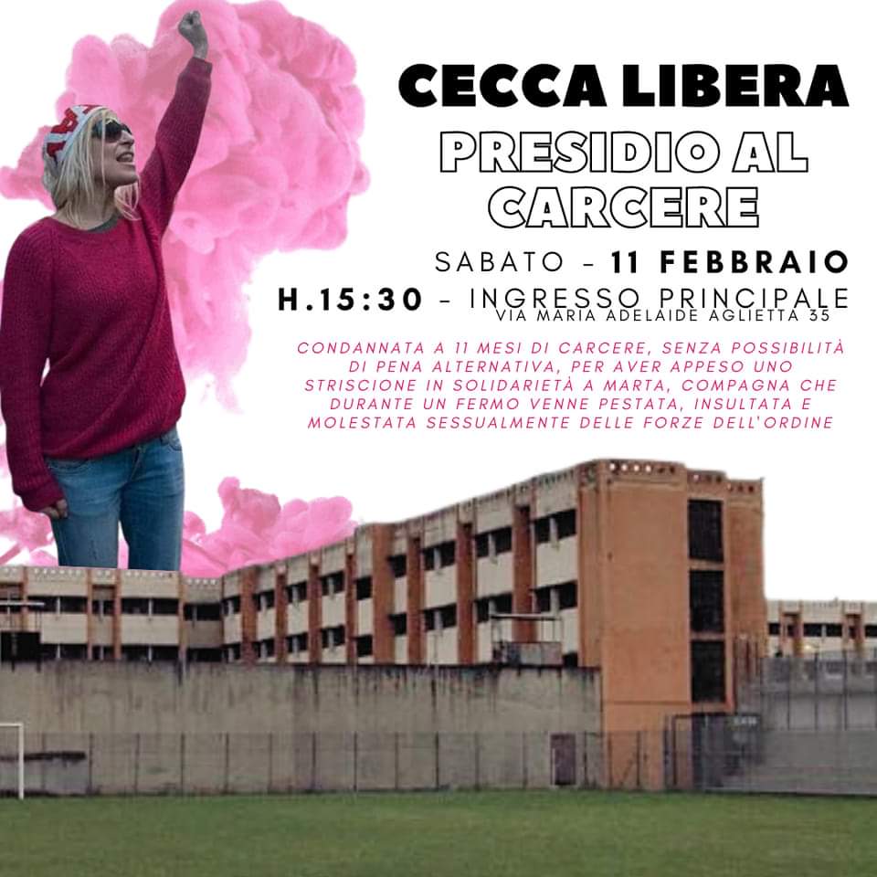 Sabato saremo davanti al carcere di Torino perché questa ennesima ingiustizia non passi sotto silenzio, vogliamo Cecca libera subito. Lo diremo a gran voce perché il tuo posto è qui fuori, nelle lotte collettive.