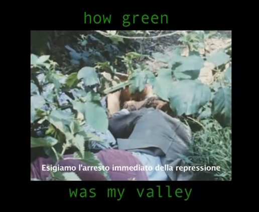 Saputo dell’improvviso arresto dei compagni non avevamo altra scelta che metterci alla tavola di montaggio. La vie qui pousse – contre – la loi – les lois – – d’exception : una vita caosmotica, come direbbe Félix Guattari, che crea ‘equivoci’ offendendo e paralizzando le categorie di una legge basata su opposizioni binarie e sulla separazione (l’accusa contro gli Umiliati di Straub-Huillet…), una vita che deborda e che deve essere umiliata appunto, punita (come è stato punito per le sue ambizioni colossali il film proto-comunista e sempre piu attuale di Michael Cimino I Cancelli del Cielo – “ultimo grande western senza frontiera” – che abbiamo ripreso a frammenti in montaggio parallelo).