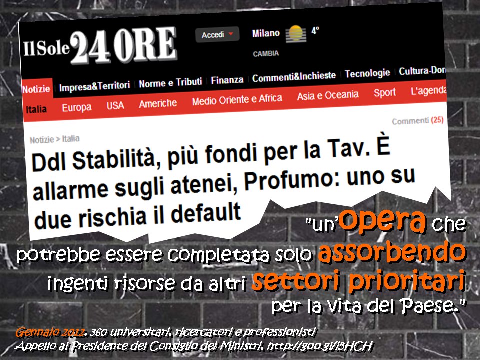 2 miliardi per il tav (in 13 anni) e rischio default per le universita!