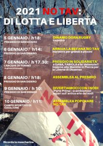 6 GENNAIO / DALLE ORE 14.00: ARRIVA LA BEFANA NO TAV AL PRESIDIO DI SAN DIDERO – Festeggiamo insieme l’arrivo della Befana e dei doni che ci porterà, sorseggiando una cioccolata calda o del vin brulé.