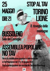 Ci vediamo giovedì 25 maggio alle ore 21,00 nella Sala del Consiglio di Bussoleno per un’assemblea popolare in perfetto stile No Tav in cui saranno anche presenti i Comitati della Val Maurienne.