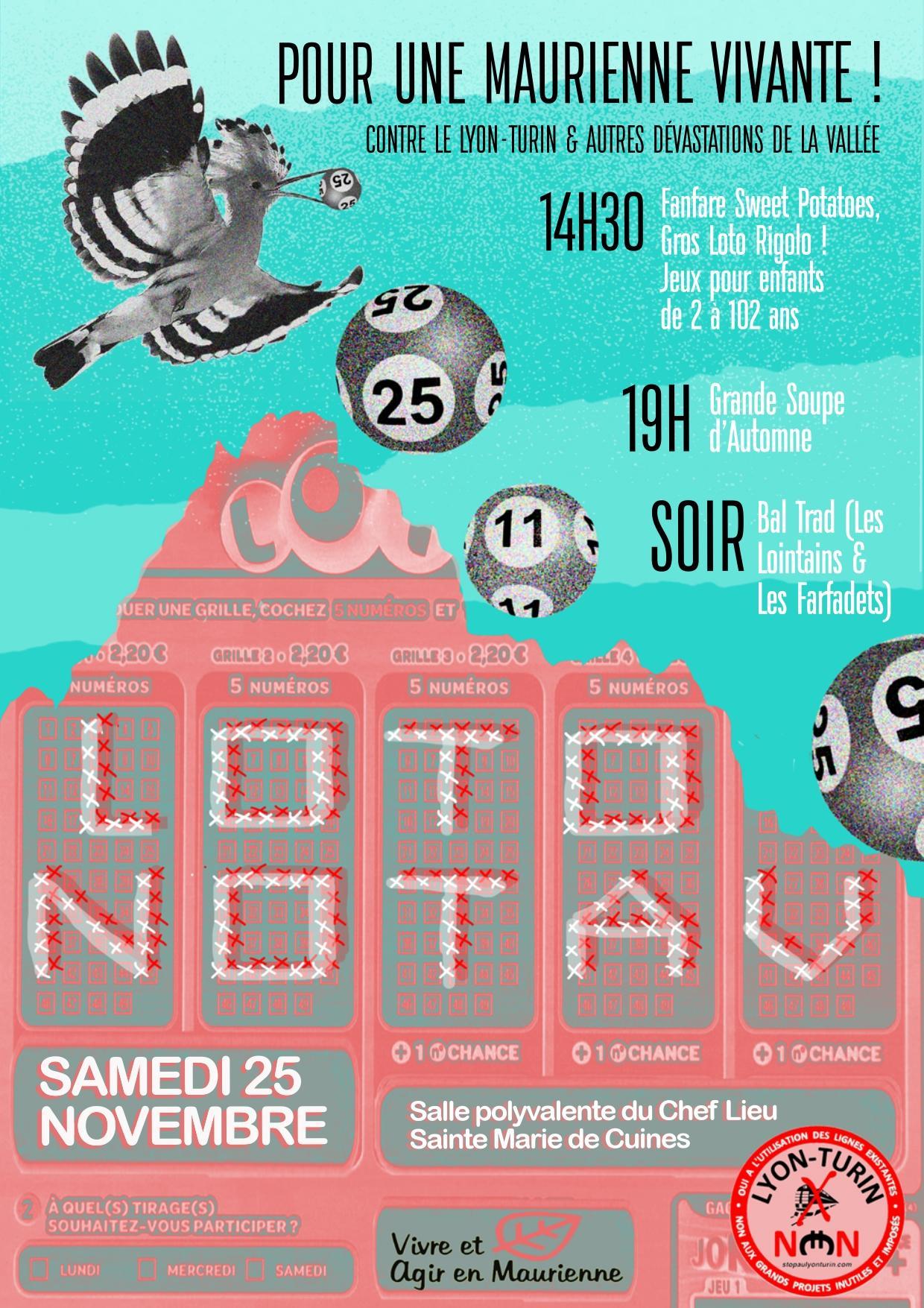 Dopo il weekend No-Tav dello scorso giugno, VAM e CCLT Maurienne organizzano un pomeriggio di giochi (tombola, giochi per bambini, laboratori, ecc.) sabato 25 novembre, seguito da una zuppa autunnale e da una danza tradizionale.
