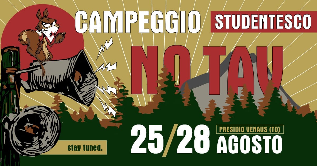 Dal 25 al 28 agosto non prendete impegni: arriva il Campeggio Studentesco NO TAV, come ogni anno nel meraviglioso presidio di Venaus (TO), in piena Val di Susa!