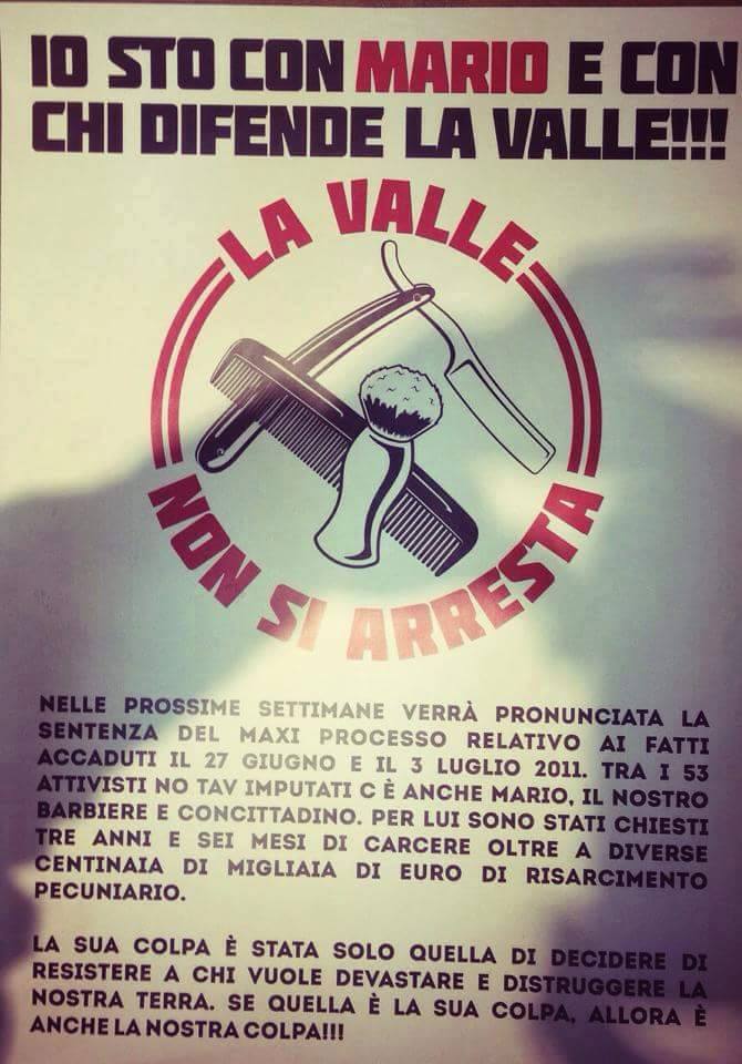 Serata di solidarietà dedicata al nostro concittadino ‘Mario il barbiere’, uno dei 53 imputati.
