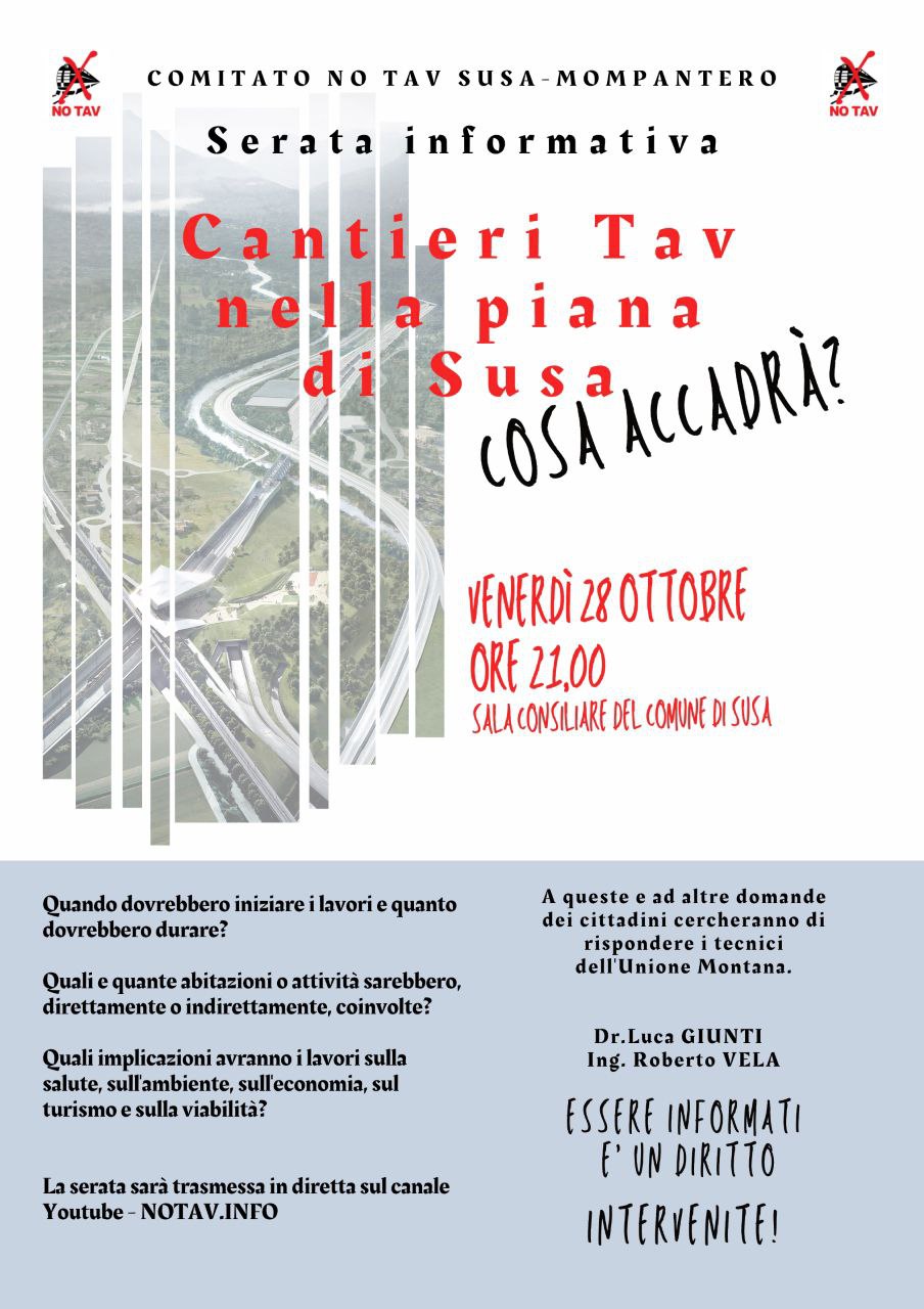 28/10: serata informativa “cantieri Tav nella piana di Susa, cosa accadrà?”
