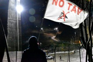 Non sono mancati i consueti cori che, insieme alle bandiere con il treno crociato, hanno accompagnato i No Tav in questa serata di lotta.