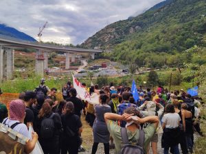 Sotto lo sguardo dei poliziotti e dei gendarmi visibilmente delusi di non essere riusciti a fermarci, il convoglio ha attraversato la frontiera per raggiungere il Presidio di Venaus, luogo storico del Movimento No Tav dove si svolge il campeggio di Ecologia Politica – rete di collettivi di diverse città italiane che riunisce in se’ movimenti mondiali per la giustizia climatica e esperienze di lotte territoriali.