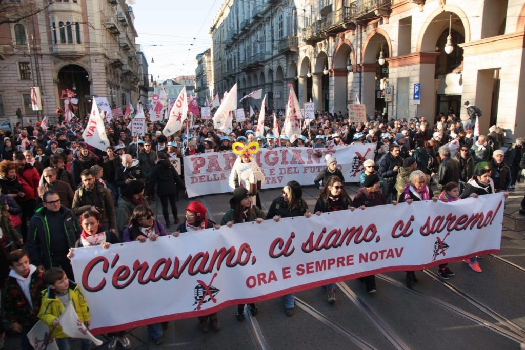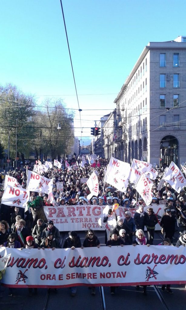 Oggi è il grande giorno. La valle invade Torino che si tinge dei colori notav. Lo slogan è chiaro, c’eravamo, ci siamo e ci saremo sempre. L’idea di futuro di una cricca di industriali alla canna del gas non rappresenta la Val Susa, non rappresenta Torino e non rappresenta questo paese. Messa in sicurezza dei territori, investimenti nella scuola e nella sanità, tutela dell’ambiente queste sono le priorità che si leggono sui cartelloni e gli striscioni.