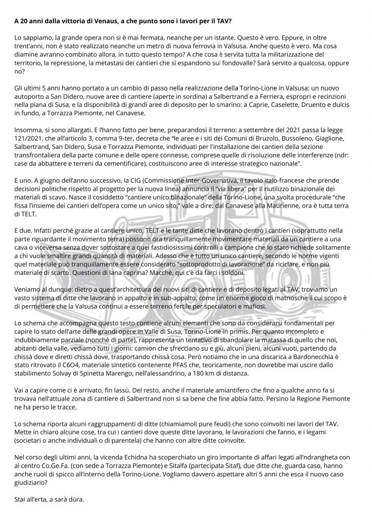 territorio, la repressione, la metastasi dei cantieri che si espandono sul fondovalle? Sarà servito a qualcosa, oppure no?