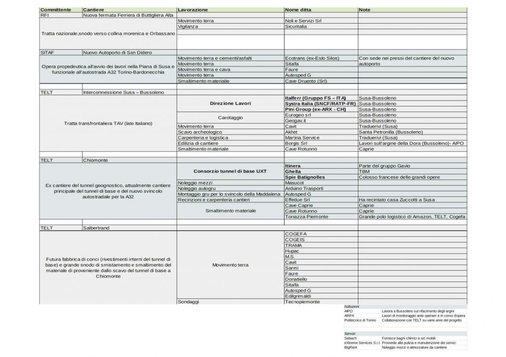 capire lo stato dell’arte delle grandi opere in Valle di Susa, Torino-Lione in primis. Per quanto incompleto e